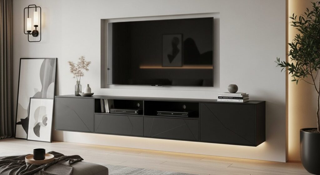 The custom TV stand not only fits perfectly but also adds a touch of elegance to our living room.